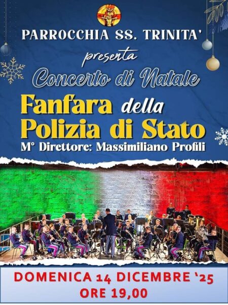 Il Natale è ormai alle porte e la Chiesa Santissima Trinità di Cerveteri si prepara ad accoglierlo con una serata straordinaria ed emozionante: il grande Concerto di Natale della Fanfara della Polizia di Stato, diretta dal Maestro Massimiliano Profili. La formazione musicale si esibirà in un programma ricco di emozioni, atmosfere suggestive, marce brillanti e brani tipici della tradizione natalizia, offrendo al pubblico un’esperienza intensa e coinvolgente.