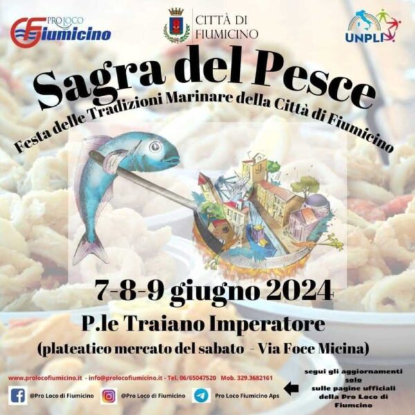 Se il 30 maggio, l’1 e 2 giugno a Passoscuro ci sarà la Sagra della Tellina, la settimana successiva sarà Fiumicino a festeggiare le eccellenze del territorio. La Pro Loco Fiumicino infatti, organizza per i giorni 7, 8 e 9 giugno, la Sagra del Pesce – Festa delle Tradizioni Marinare della Città di Fiumicino.