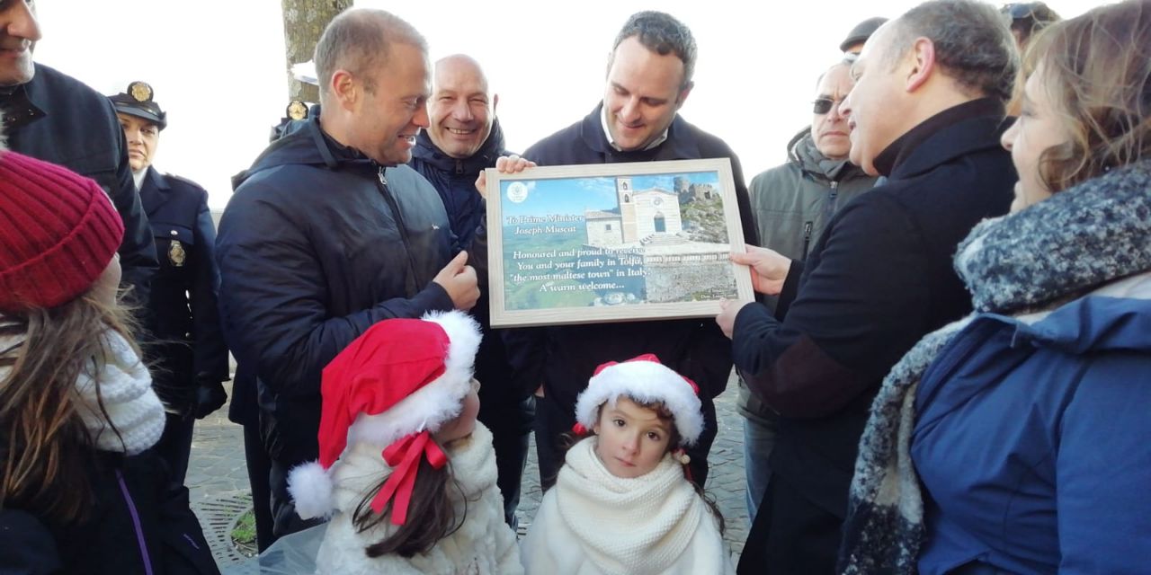 Una giornata tanto bella e luminosa quanto fredddissima, che ha regalato una splendida vista sulla antica Rocca e su tutta la vallata sottostante piazza Vittorio Veneto, ha fatto da scenario alla visita del Primo Ministro maltese Joseph Muscat a Tolfa. Un nutrito gruppo di rapprersentanti delle varie associazioni e realtà locali ha atteso che il diplomatico salisse in collina dopo aver visitato il castello di Santa Severa, in compagnia dell’onorevole Alessandro Battilocchio. Ad accogliere Muscat, la sua famiglia ed altri accompagnatiori, c’erano naturalmente il sindaco Luigi Landi, l’assessore alla Cultura Cristiano Dionisi e la delegata Angela Ceccarelli, con una rappresentanza della banda “Verdi” diretta dal maestro Stefania Bentivoglio. Presente pure Alesssandro Bettarelli, sindaco della vicina Canale Monterano, gemellata con Ala, un paese dell’isola di Gozo, vicino a Ghajnsielem, centro con cui proprio Battilocchio, come sindaco, avviò il gemellaggio con Tolfa.Si è trattato di una visita non ufficiale, ritagliata durante una vacanza italiana del premier maltese, ma nonostante il breve preavviso la comunità tolfetana è riuscita ad organizzare un’accoglienza accurata. Nel suo breve saluto Landi ha ricordato l’amicizia ventennale tra Ghajnsielem e Tolfa che è “la più maltese delle città italiane”, frase riportata pure sulla foto della Rocca regalata al primo ministro, esortando Muscat a ritornare in collina in visita ufficiale. All’ospite maltese sono stati consegnati degli omaggi dell’amministrazione (compresa una maglietta di Tolfarte, portata da Dionisi), dall’associazione Fidapa, dalla Komen, dal Circolo dei poeti a braccio. Poi, prima di portare il gruppo a gustare un pranzo tipico, le immancabili foto: quella con le bimbe in tutù e cappello di Babbo Natale, con una ridotta Natività (una Madonna con il bambino un po’ infreddoliti) e poi con tutto il gruppo con il municipio come sfondo.“Joseph è un grande amico da sempre – ha spiegato Alessandro Battilocchio -. Gli ho parlato in questi anni tante volte della bellezza del nostro comprensorio e sono lieto che sia venuto in visita privata con la sua famiglia in questi giorni di festa. Ha davvero molto apprezzato questa zona e tornerà presto a trovarci“. “Alessandro mi ha sempre parlato del comprensorio a nord di Roma – la replica di Joseph Muscat -. Per me è un vero piacere essere qui anche se non mi aspettavo un’ospitalità così calorosa. Con lui siamo stati giovani colleghi a Bruxelles e la nostra amicizia è cresciuta nel tempo. È una grande persona, innamorato della sua terra“.