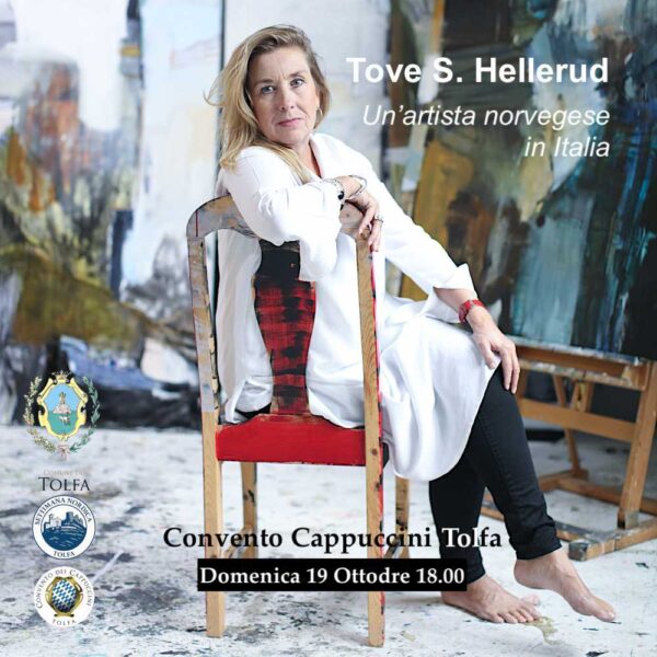 Lo spendido Convento dei Cappuccini, dice il presidente Steigan, ospiterà da domani una mostra per sonale di Sigrun Hellerud , pittrice norvegese che lavora principalmente con olio su tela e tecniche miste su carta. Le sue opere sono state esposte in Norvegia, Svezia, Danimarca, Germania, Spagna, Cina e Stati Uniti, e in diverse occasioni in Italia, in città come Milano e Firenze. Tra i momenti salienti della sua carriera si ricordano due grandi mostre personali a New York, che hanno ottenuto attenzione dalla stampa internazionale. Formatasi artisticamente in Norvegia e in Danimarca, Tove Sigrun Hellerud è nata e cresciuta a Horten, dove tuttora lavora per parte dell’anno, mentre il resto della sua produzione avviene nel suo atelier nei dintorni di Roma. La sua ricerca si colloca nella tradizione lirico-espressionista: trae ispirazione dalla natura e dalla cultura, cercando una libertà pittorica in cui colori e forme diventano immagini aperte, tattili e sensibili. Le sue tele invitano lo spettatore al dialogo e offrono sempre nuove associazioni.