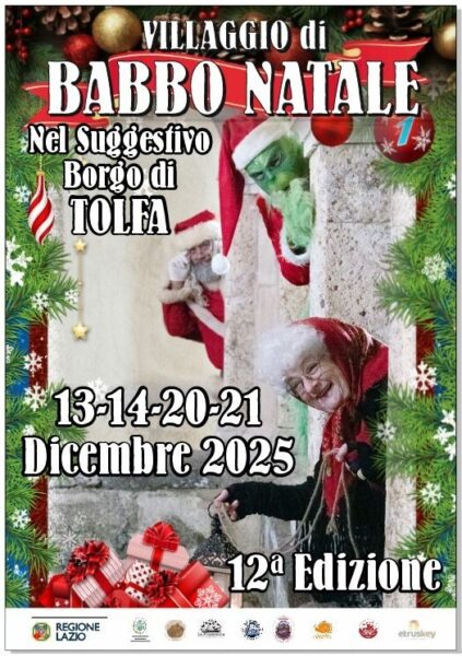 Nel pittoresco borgo medievale di Tolfa, a pochi passi da Roma, incastonato tra i paesaggi rurali, la magia e la tradizione del Natale prenderà vita nei due weekend del 13 – 14 dicembre e del 20 – 21 dicembre con Il Villaggio di Babbo Natale, giunto alla sua 12a edizione.