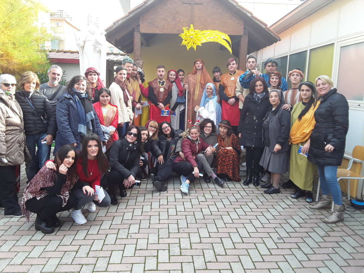La rappresentazione della Natività – fortemente voluta da Suor Stefania Lazzara, direttrice del centro formativo – è stata realizzata giovedi 22 dicembre 2016 nel giardino delle suore figlie di Maria Ausiliatrice di via Trieste durante la festa di saluto prima delle vacanze natalizie.