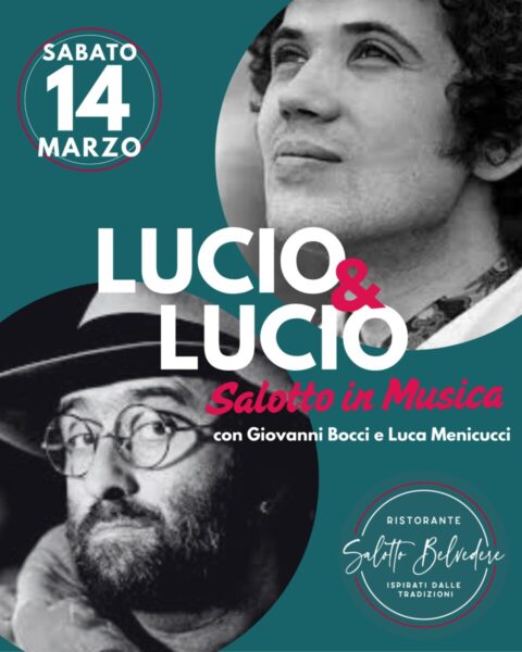 Gioia e Domenico, che si cimentano tra sala e cucina del delizioso e accogliente locale bordo lago, invitano i Salottiani il 14 marzo, sabato. Con Giovanni Bocci, voce e tromba, e Luca Menicucci, chitarra, festeggeranno e ricorderanno il compleanno di Lucio Dalla il 4 Marzo, e Lucio Battisti il 5 Marzo, ripercorrendo le loro grandi “poesie cantate”.
