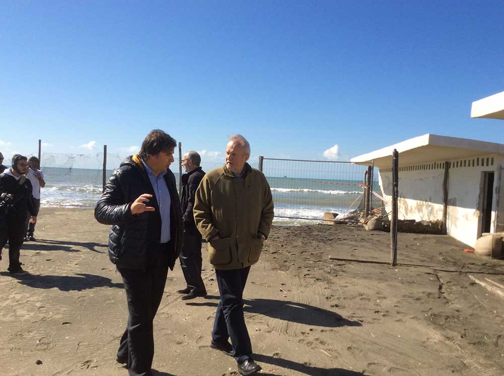 Il sindaco di Fiumicino, Esterino Montino, e l’assessore regionale, Fabio Refrigeri, hanno effettuato questa mattina un sopralluogo congiunto nel tratto di Fregene Sud fortemente colpito dalle mareggiate degli ultimi giorni e, ormai da diverso tempo, da un fenomeno erosivo che ha consumato la spiaggia finendo con il danneggiare le strutture balneari. Presenti anche l’assessore ai Lavori Pubblici del Comune di Fiumicino Angelo Caroccia, l’assessore all’Ambiente Roberto Cini, il Presidente della Commissione Ambiente Massimiliano Chiodi.