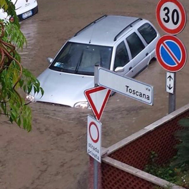 Intorno alle 14:30 infatti, dopo una mattinata di pioggia, una bomba d’acqua si è abbattuta improvvisamente sulla città.