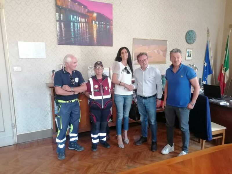 Arrivati a destinazione, l’Assessore Deborah Zacchei, il consigliere Massimo Boschini, i volontari della Protezione civile e del’Anps sono stati ricevuti dal sindaco Massimo Isola, che ha avuto nell’occasione un cordiale colloquio telefonico con il suo collega Ernesto Tedesco.