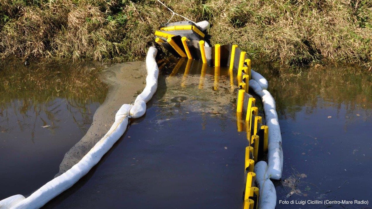 Barriere per fermare il kerosene nei canali (Foto gentilmente concessa da Luigi Cicillini)