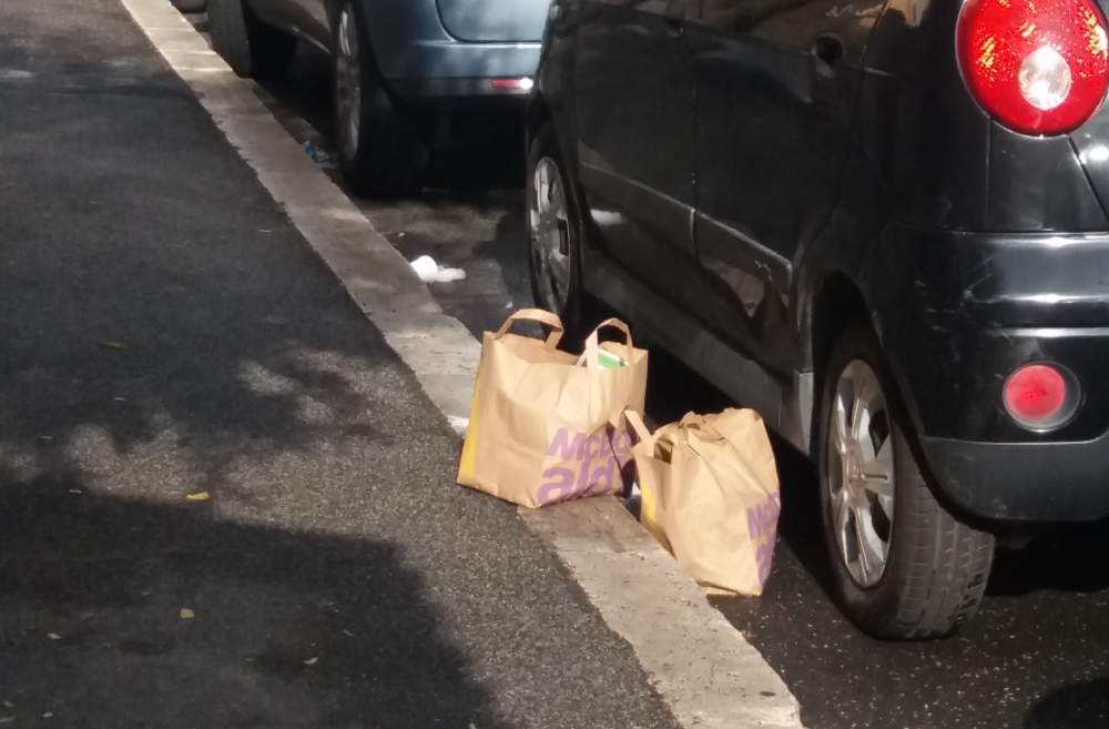 In questo caso si richiede la rimozione di rifiuti abbandonati in via Livorno a Ladispoli. Dalla foto inviataci da un nostro lettore sembra che delle persone poco corrette abbiano consumato un pasto di Mc Donald’s abbandonando i rifiuti sul ciglio nella strada tra le auto parcheggiate. E’ chiaro che ora un intervento della ditta risolverà un problema che in questo caso può essere imputato unicamente all’inciviltà di alcuni cittadini.
