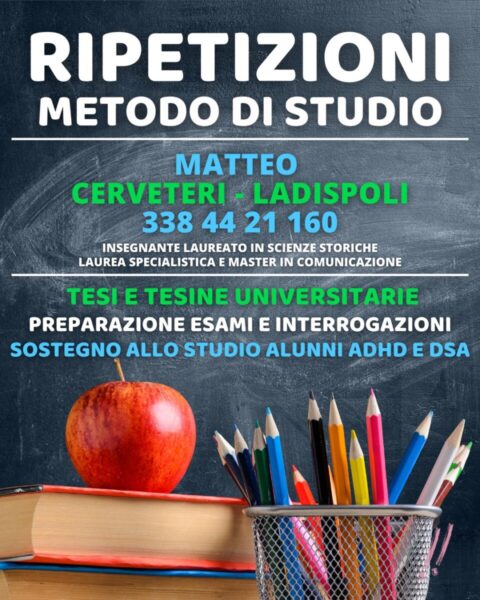 Per informazioni o per un confronto sul metodo di studio, è possibile contattare Matteo Orlando, docente e tutor attivo a Cerveteri e Ladispoli.