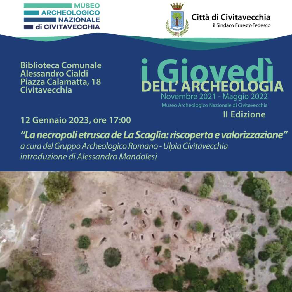 La necropoli etrusca de La Scaglia segna l’esordio delle scoperte archeologiche nel territorio di Civitavecchia: le prime indagini di tipo antiquario risalgono al 1830 con Donato Bucci, in seguito nel primo quarto del ‘900 Raniero Mengarelli insieme a Salvatore Bastianelli misero in luce 24 tombe di età arcaica. Attualmente il Gruppo Archeologico Romano sezione Civitavecchia , in collaborazione con la Soprintendenza per l’Area Metropolitana di Roma, Viterbo e Etruria Meridionale, sta svolgendo un importante lavoro di rilettura e valorizzazione del complesso, con nuovi e interessanti dati.