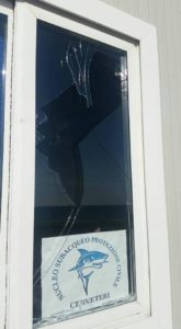 Due vetri rotti. Qualcuno si è “divertito” così. Non sapendo sicuramente che in quel container ci sono dei volontari e delle volontarie che mettono a disposizione il loro tempo e la loro professionalità per i cittadini e i bagnanti”.