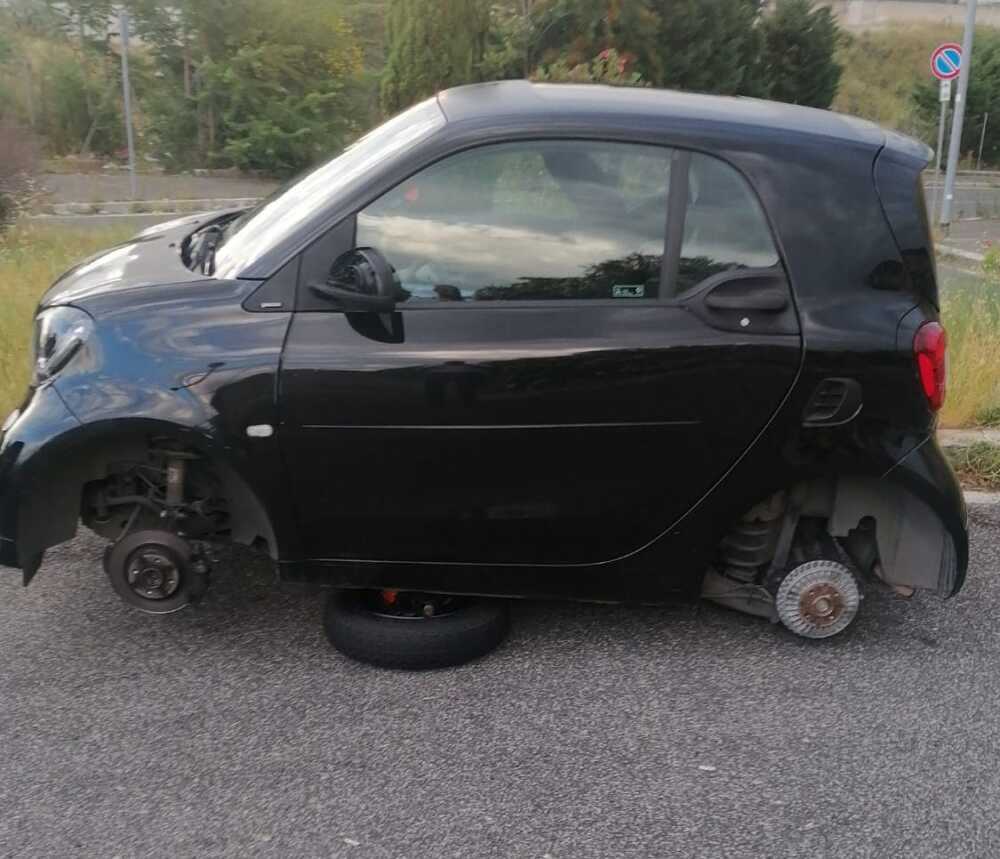Gli pneumatici razziati a una Smart, danneggiata una Panda; la rabbia del cdq