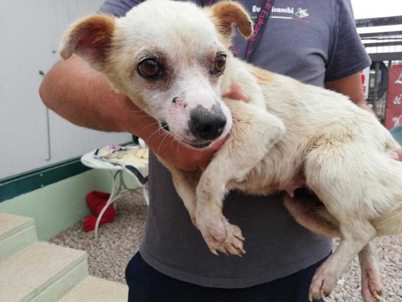 Ho deciso, la pubblico, anche se so già che è senza speranza. Oggi ero al rifugio di Olbia, mi hanno chiesto aiuto per lei. VITTORIA, non è giovane, non è bella, non è sana: ha la rogna,  un eczema da sporzicia, forse ha anche la leishmania, si attendono i risultati delle analisi, ha delle mamelle di chi ha partorito tanti cuccioli, ma quello che colpisce che questa miseria di cane è rassegnata, non aspetta niente, non spera niente… Peserà si o no 6 kg, avrà 6,7, 8 anni forse meno. Arriverà al cuore di qualcuno?