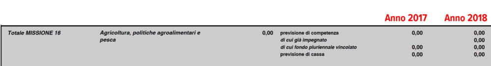 MISSIONE 16 AGRICOLTURA, POLITICHE AGROALIMENTARI E PESCA (non c’erano e non ci saranno fondi)