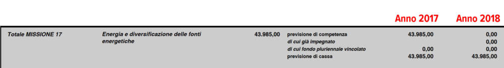 MISSIONE 17 ENERGIE E DIVERSIFICAZIONE DELLE FONTI ENERGETICHE (-100,00%)