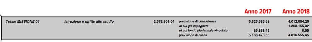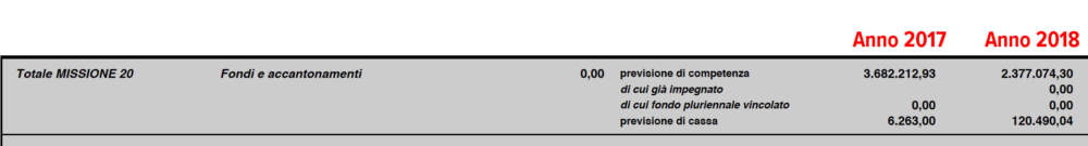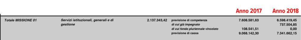 A conferma che quanto da noi scritto nei giorni scorsi corrisponde a realtà riporteremo missione per missione le differenze tra il bilancio 2017 ed il bilancio 2018. I ritagli sono ripresi dalla delibera di giunta del 5 febbraio 2018 approvata dalla giunta Grando.