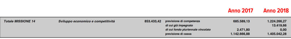MISSIONE 14 SVILUPPO ECONOMICO E COMPETITIVITA’ (+78,69% da residui 2017)