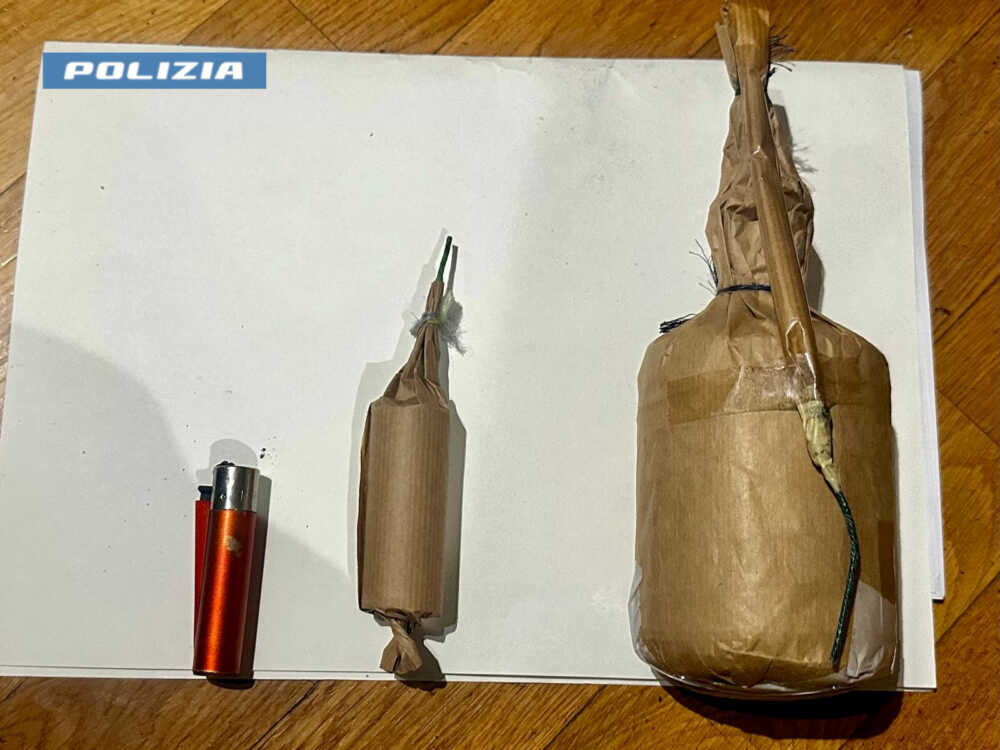 I poliziotti hanno poi perquisito l’abitazione dell’uomo ,trovando due ordigni pirotecnici del peso complessivo di circa mezzo chilo che, esaminati dagli artificieri, sono risultati molto pericolosi in quanto, se opportunamente innescati, avrebbero potuto provocare effetti lesivi importanti per persone e cose.