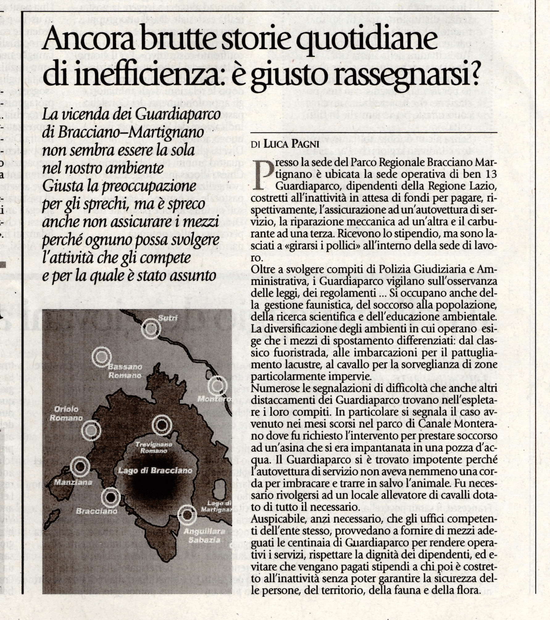 Noi abbiamo il diritto riconosciuto dalla Carta Costituzionale di segnalare e denunciare le anomalie e le inefficienze di chi deve stare al servizio dei cittadini a cui compete la sovranità nei limiti consentiti dalla Costituzione. E tra questi limiti non c’è quello di critica quando fondata come nei casi segnalati con l’articolo di questa associazione su alcune delle disfunzioni nell’ente Parco di Bracciano Martignano.
