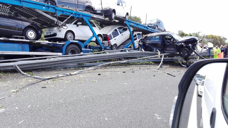 Secondo quanto appreso una bisarca che trasportava auto che andava in direzione Roma sarebbe finita per cause ancora in corso di accertamento sulla corsia opposta dopo aver sfondato il guard rail.