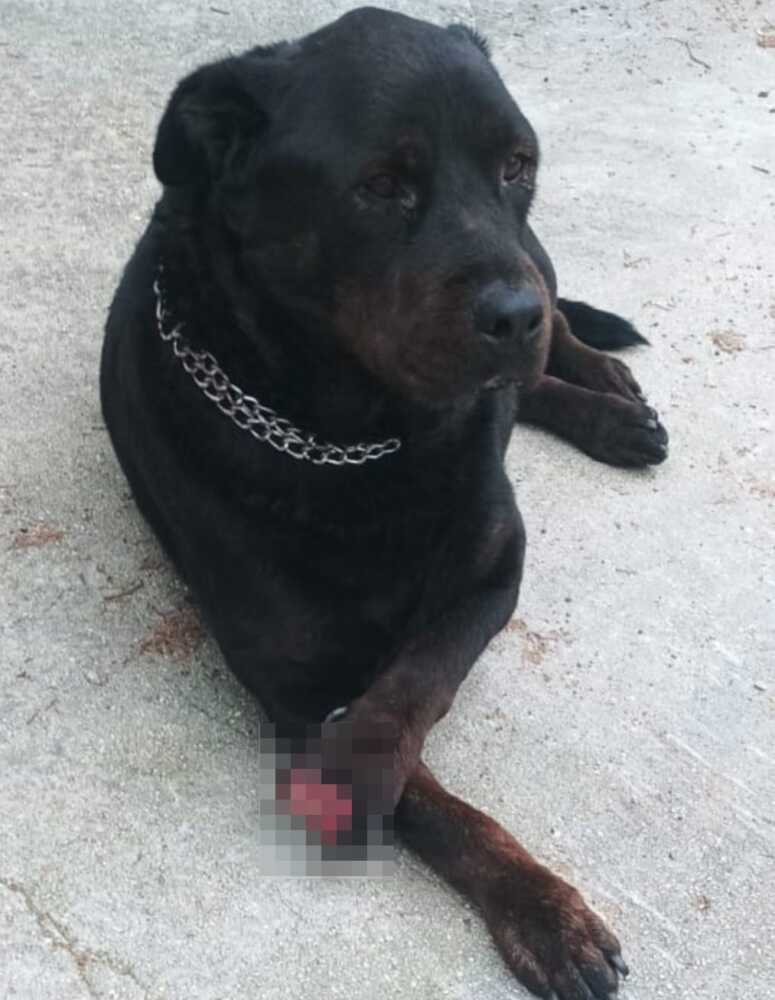 L’ hanno trovata con una zampa ferita che la povera cagnolona continuava a leccare e mordere tanto da avere addirittura l’osso esposto.