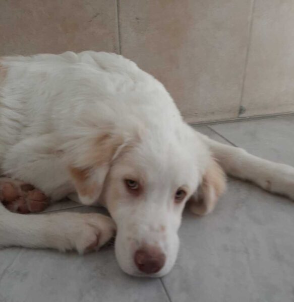 No SKY, un tenero cucciolo come te non può essere così mesto. Il tuo musetto e i bellissimi occhi di giada sono tristi. Un cucciolo dovrebbe correre, saltare, avere tante coccole, essere felice.SKY è uno splendido maremmanino nato l’ 1.11.2021.E’ un esserino buono, dolce e docile che deve trovare subito