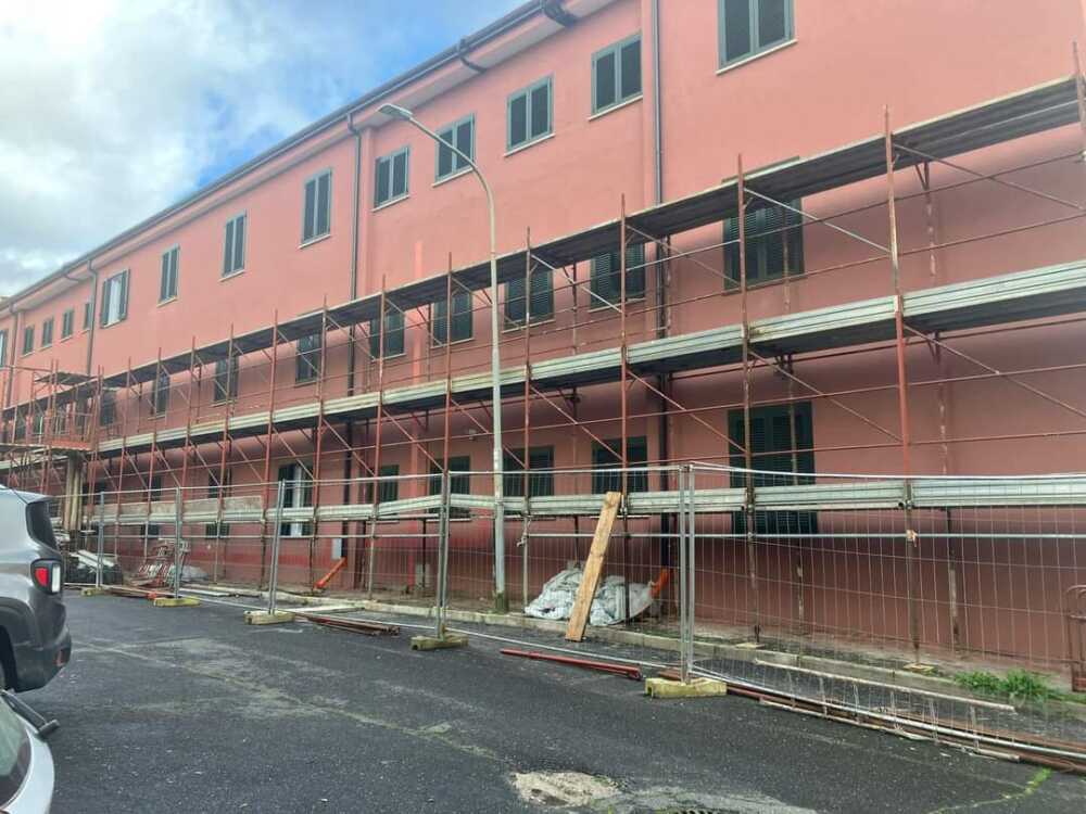 I lavori hanno previsto il rifacimento delle facciate nonchè l’efficientamento energetico di tutto il complesso; inoltre stiamo riqualificando anche l’area esterna antistante.