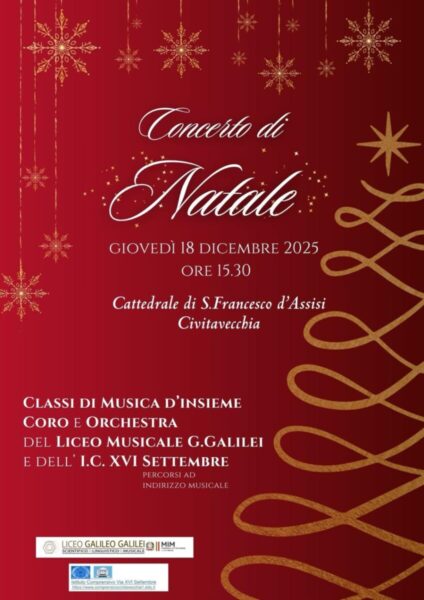 Civitavecchia, il liceo “Galilei” e l’IC XVI Settembre invitano al concerto di Natale in Cattedrale https://www.terzobinario.it/civitavecchia-il-liceo-galilei-e-lic-xvi-settembre-invitano-al-concerto-di-natale-in-cattedrale/ Sun, 14 Dec 2025 13:35:12 +0000 https://www.terzobinario.it/?p=400016 Il 18 dicembre alle 15.30, preparatevi a vivere la magia delle festività in una cornice d’eccezione: il Concerto di Natale del Liceo Scientifico, Linguistico e Musicale “Galileo Galilei” di Civitavecchia in collaborazione con l’I.C. XVI Settembre. Un appuntamento che unisce tradizione, talento e la gioia della musica, trasformando la Cattedrale di San Francesco d’Assisi in […]