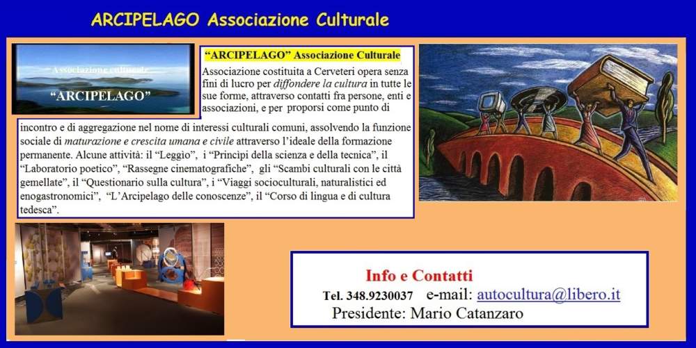 I nuovi incontri pubblici progettati e organizzati dall’Associazione culturale “Arcipelago” si tengono ogni mercoledì dalle ore 17 alle ore 19