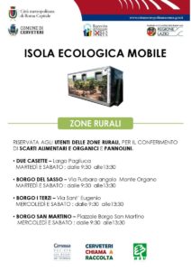 L’A.T.I. CAMASSAMBIENTE – ASV comunica che dalla prossima settimana sarà rinforzato il servizio delle isole ecologiche mobili nelle zone rurali che saranno al servizio degli utenti due giorni alla settimana, anziché uno.