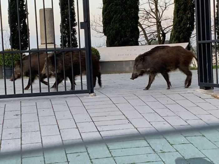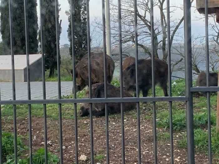 Passeggiata mattutina per i cinghiali di Roma Nord. Gli ungulati, sabato 7 marzo, sono stati notati da un lettore di Terzo Binario a Tomba di Nerone.