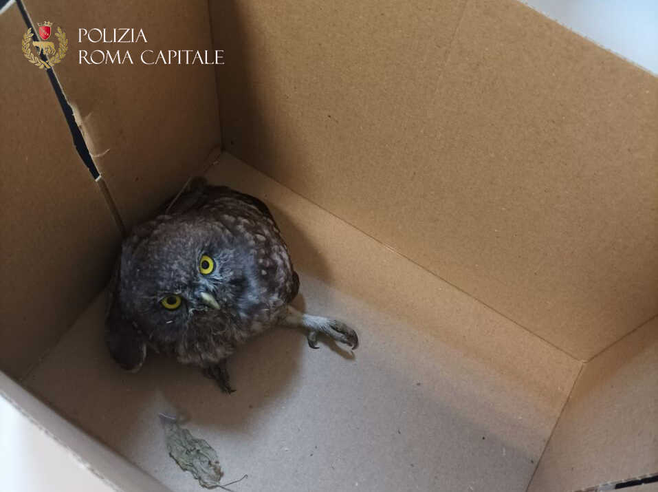 Era ferita e rannicchiata in un angolino a bordo strada su via della Moschea, la civetta che questa mattina è stata trovata e soccorsa da una pattuglia della Polizia Locale del II Gruppo Parioli.