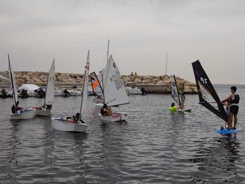 Per lo scorso fine sttimana l’approdo di lungomare Thaon de Revel si è popolato di bambini e ragazzi che si sono avvicinati agli sport velici, salendo per la prima volta sugli optimist o sulle tavole dei wind surf.
