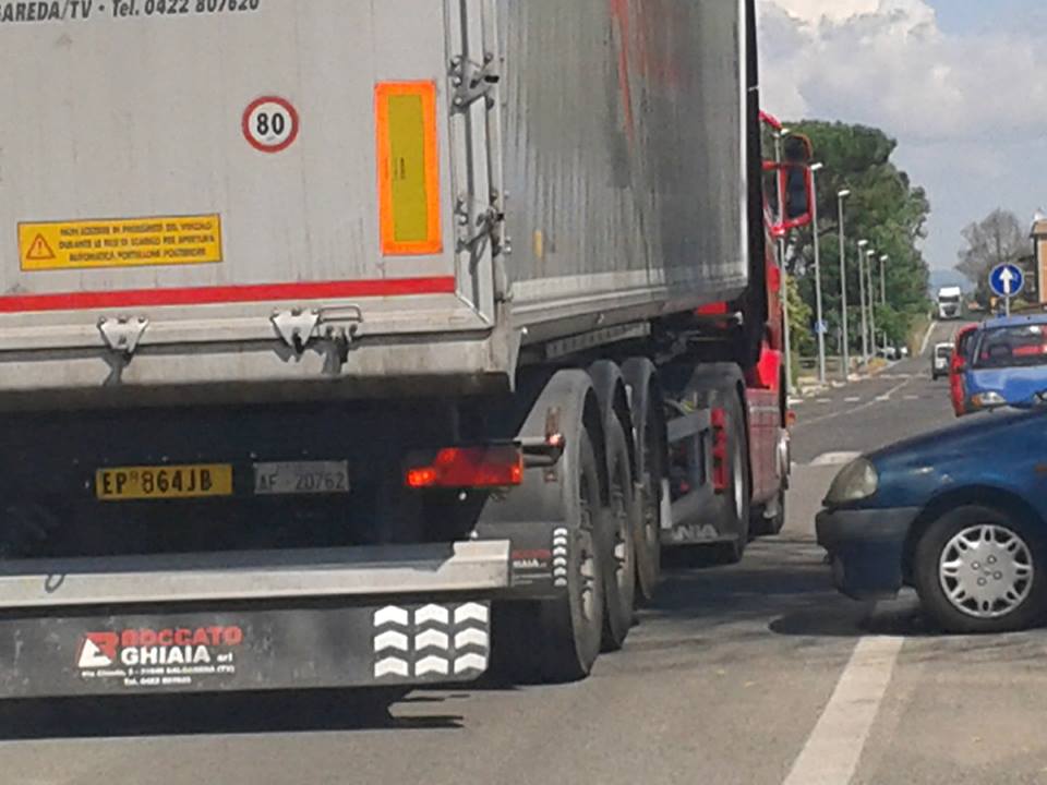 Camion in coda su Via Tre Denari