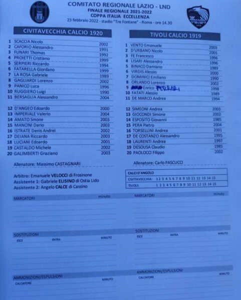 - 19st’ – Occasione per il Tivoli che colpisce la traversa con De Costanzo sull’uscita di Scaccia