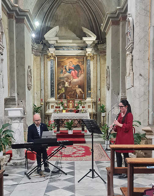 Il compito di inaugurare la serie di tre eventi è toccato al “Duo Cacio e Pepe” con il Maestro Giulia Leonardo al clarinetto ed il M° Emiliano Manna al pianoforte con il concerto Pâtisserie Française, un programma di miniature per clarinetto e pianoforte selezionate dal repertorio della Belle Epoque francese.