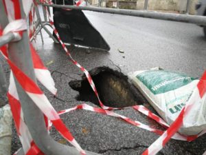 Una voragine di una quarantina di centimetri si è aperta in via Montanucci, all’altezza del civico 102. Prontamente transennata,