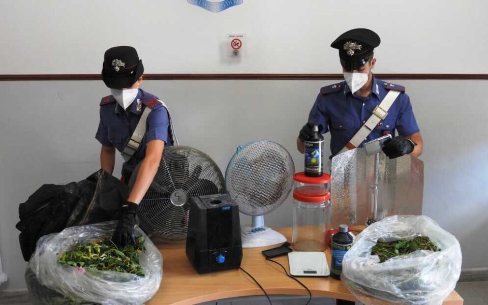 I militari si sono insospettiti per un forte odore pungente proveniente dal capannone in uso ai due fratelli. Durante la perquisizione nel capannone sono state trovate 20 piante di marijuana alte quasi 2 metri con un peso complessivo di oltre 2 kg, mentre nell’abitazione di uno dei due fratelli sono state trovate altre 6 piante di marijuana alte quasi 2 metri e con un peso di oltre 1,5 kg. La crescita delle piante era garantita da lampade alogene, ventilatori, termostati e concime.