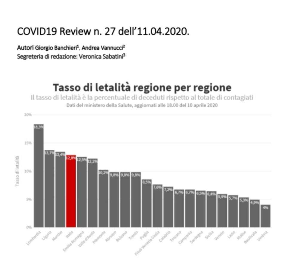 A renderlo noto la Regione Lazio che ha pubblicato uno studio che mostra il tasso di letalità del coronavirus su scala nazionale e per ognuna delle regioni d’Italia.