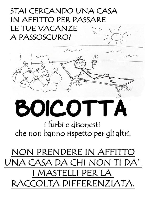 Diciamolo, fare la differenziata porta a porta a Passoscuro è rimasto un vezzo, forse anche un po’ estremista, di qualche irriducibile che evidentemente non è furbo come gli altri. Gente strana e intollerante che va in giro a scattare foto e a rimbrottare concittadini armati dell’immancabile sacchetto da abbandonare al primo angolo della strada.