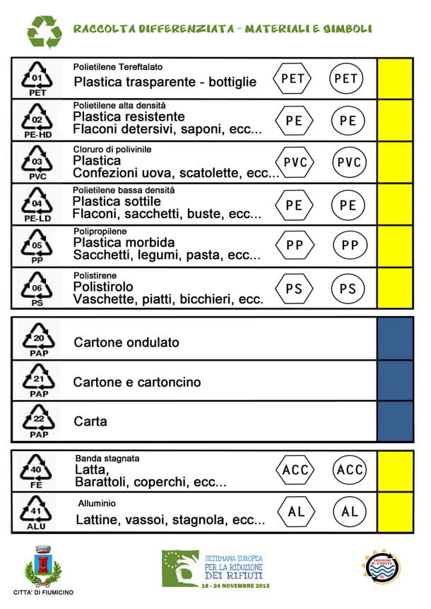 Tutto perché nonna Maria, quasi 83 anni splendidamente portati, ci chiamava sempre per chiederci dove buttare questo o quell’altro… A nonna Maria si è aperto un mondo, quando le abbiamo svelato che molti degli imballaggi che doveva gettare riportavano chiaramente in che tipo di raccolta dovessero essere conferiti. O perlomeno avevano l’indicazione del tipo di materiale con il corrispondente codice per il riciclo.