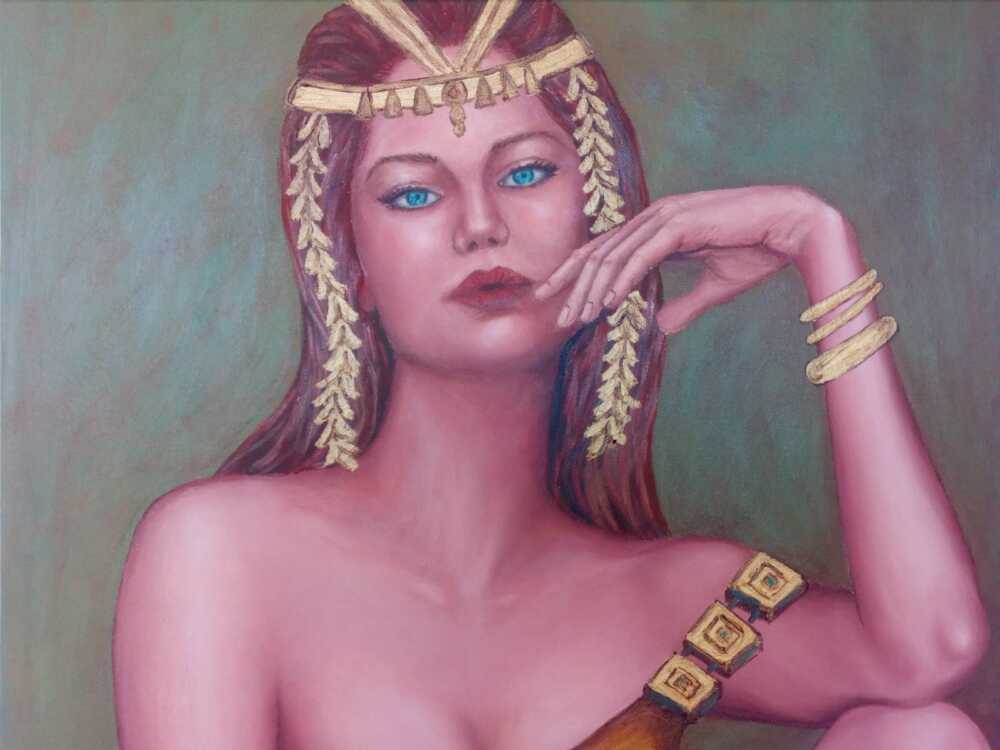 Le opere sono ispirate dallo studio di Gustav Klimt, sono in prevalenza a tema mitologico e raffigurano personaggi dell’antichità e allegorie. I quadri originali di Fabiana Brizi hanno in comune con Klimt l’uso del colore oro, come si vede nella foto del titolo, particolare dell’opera “Salomè”.