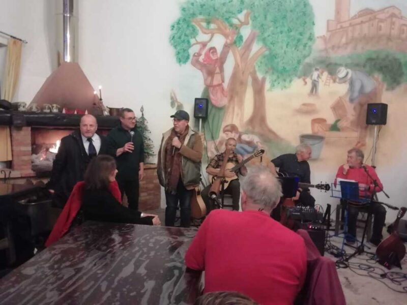 A fare gli onori di casa, per l’Olitar, Alessandro Scibilia il quale ha spiegato come mai, in un momento così buio per il mondo, si è pensato all’ulivo come simbolo di pace. E anche la scelta di proporre la particolarissima musica celtica, insieme alla degustazione di prodotti enogastronomici a km 0, in cui naturalmente l’olio del frantoio ha fatto da protagonista, insieme ai legumi di Podere Loriana. Non è mancato il dolce, preparato dalla cuoca dell’Alleanza Slow Food Vittoria Tassoni. Mentre il vino lo ha offerto “Terre Giorgini”.