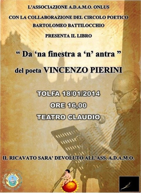 Domani, sabato 18 gennaio alle ore 16 presso il Teatro Claudio di Tolfa, sarà presentato il libro di poesie tolfetane “Da ‘na finestra a ‘n’ antra” di Vincenzo Pierini.