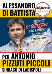 Riceviamo e pubblichiamo – Oggi, alle ore 17,30 in Piazza Rossellini, il Movimento 5 Stelle di Ladispoli chiuderà, con un attesissimo evento, la campagna elettorale a sostegno di Antonio Pizzuti Piccoli Sindaco.