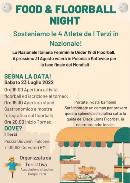 Per loro infatti, Terrattiva – Associazione Cittadina del Borgo, ha organizzato per la serata di sabato 23 luglio “Food & Floorball Night”, un evento di raccolta fondi per le ragazze azzurre e aiutarle a sostenere le spese di viaggio e permanenza in terra polacca in occasione della rassegna iridata che si svolgerà a fine agosto.