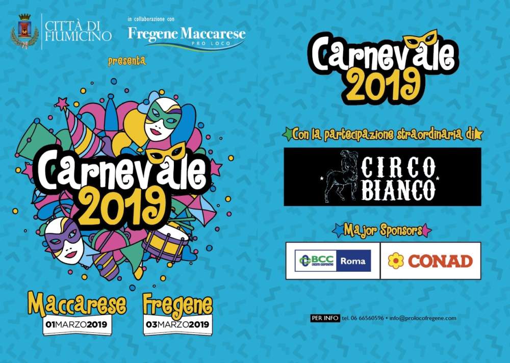 L’Amministrazione di Fiumicino, in collaborazione con la Pro Loco di Fregene e Maccarese e tutte le realtà che si sono messe a disposizione, organizza gli eventi del Carnevale 2019 che avranno inizio il prossimo 1 marzo.