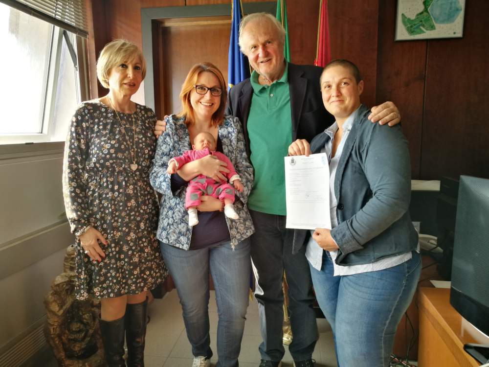 “Da assessore alle Pari Opportunità non posso che essere felice di questo risultato dell’Amministrazione – ha aggiunto l’assessore Anna Maria Anselmi -. Un altro passo verso l’affermazione dei diritti civili a pieno titolo per tutti i cittadini e le cittadine. Alle mamme e alla piccola vanno i miei migliori auguri per il futuro e spero che questo sia solo il primo di una serie di atti simili”.