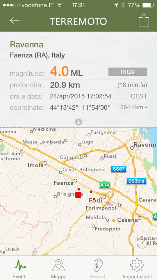 Forte scossa di terremoto del 4° grado oggi 24 aprile 2015 a Faenza