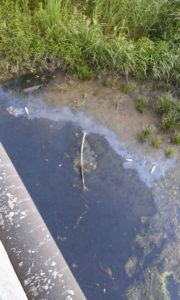 Una macchia oleosa è infatti comparsa sulla superficie dell’acqua e assieme ad essa un gruppo di pesci morti.
